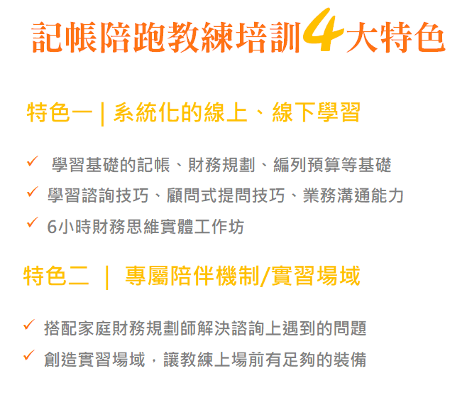 專責督導:每一位陪跑教練皆搭配一位家庭財務規劃師學姐,確保諮詢內容的正確性及個別答疑。