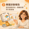 | 行動方案 | 獲得一套初階且客製化的行動指南,立即啟動正向改變。 |