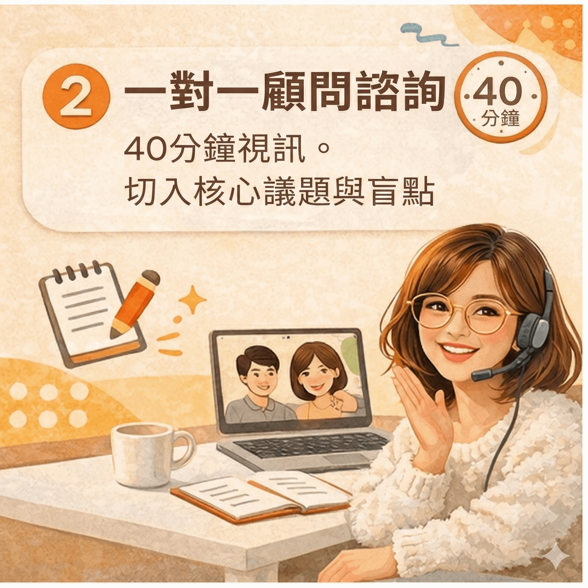 一對一線上視訊諮詢 (使用穩定且安全的視訊會議平台)。