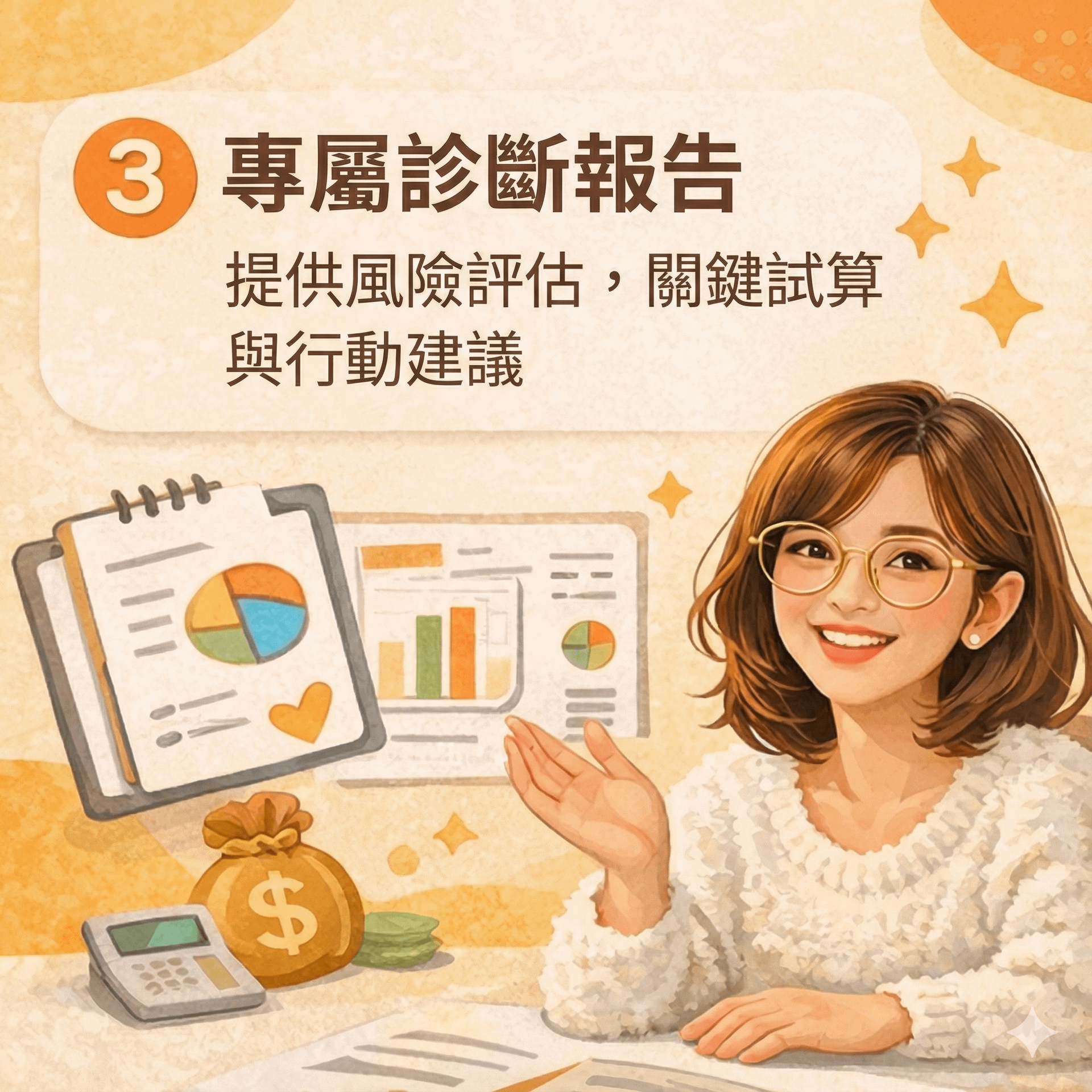 在諮詢過程中,財務規劃師將基於您的檢測報告與現況,提供以下具體產出: